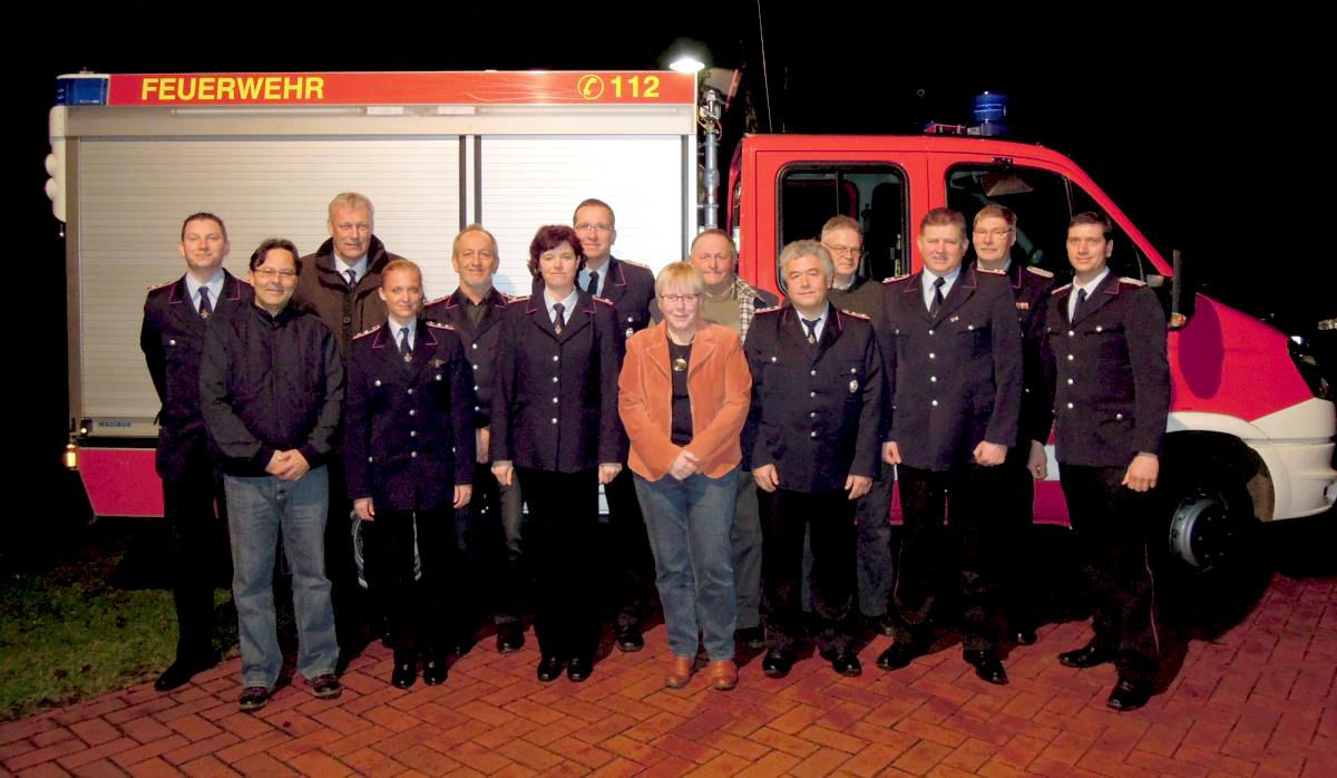 Im vergangenen Jahr wurden außerdem bei einem Arbeitseinsatz die Räumlichkeiten der Feuerwehr renoviert und ein neuer automatischer externer Defibrillator (AED) für das Dorfgemeinschaftshaus beschafft. Für eine gleichbleibend hohe und zuverlässige Dienstbeteiligung sprach die Gruppenführerin Kathrin Wehrse ihren Kameraden ein großes Lob aus. Außerdem absolvierten Holger Palandt und Ralf Schrader den ersten Teil der Truppmannausbildung. Marcel Biermann und Felix Niemeyer schlossen mit dem Ablegen der Prüfung zudem den zweiten Teil der Truppmannausbildung ab. Matthias Dettmer, Uta Freytag, Anja Pleitz und Kathrin Wehrse nahmen an einem Digitalfunklehrgang teil, Felix Niemeyer besuchte das Seminar Atemschutznotfalltraining an der Kreisfeuerwehrschule in Nienburg. Falk Stuwe schloss erfolgreich die Ausbildung zum Gruppenführer ab. Im Zuge der Versammlung wurde er vom stellvertretenden Gemeindebrandmeister Andreas Haake zum Löschmeister befördert.